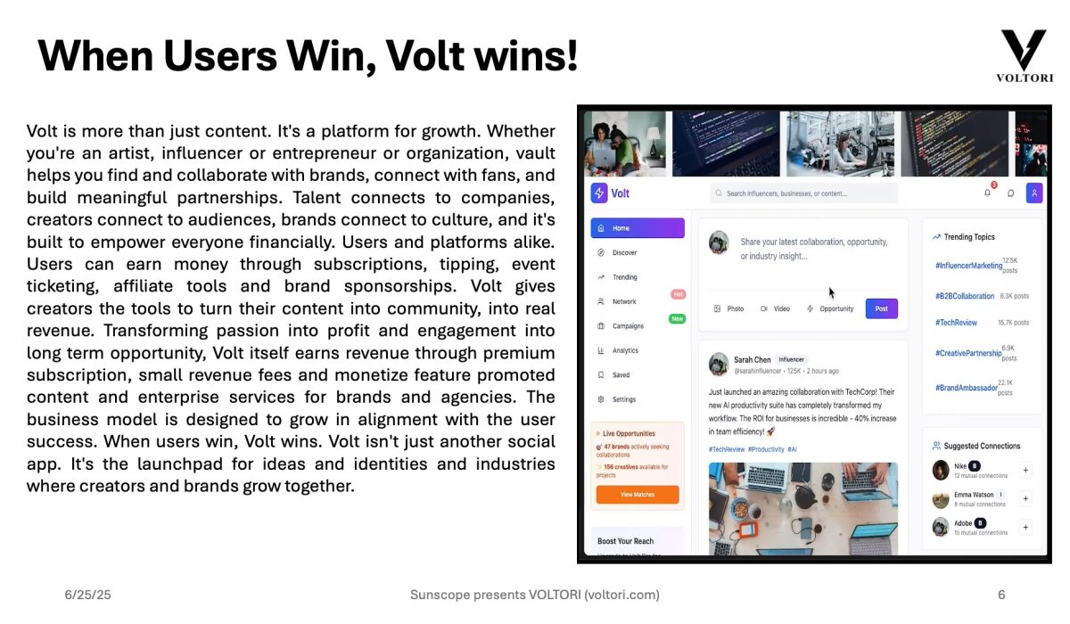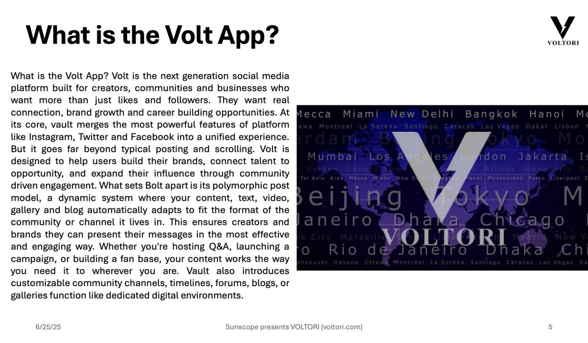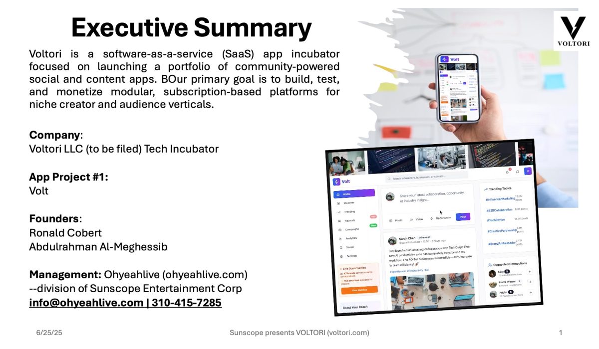 Today, Voltori is actively incubating investable technologies across social media, fintech, health, education, AI, and entertainment.